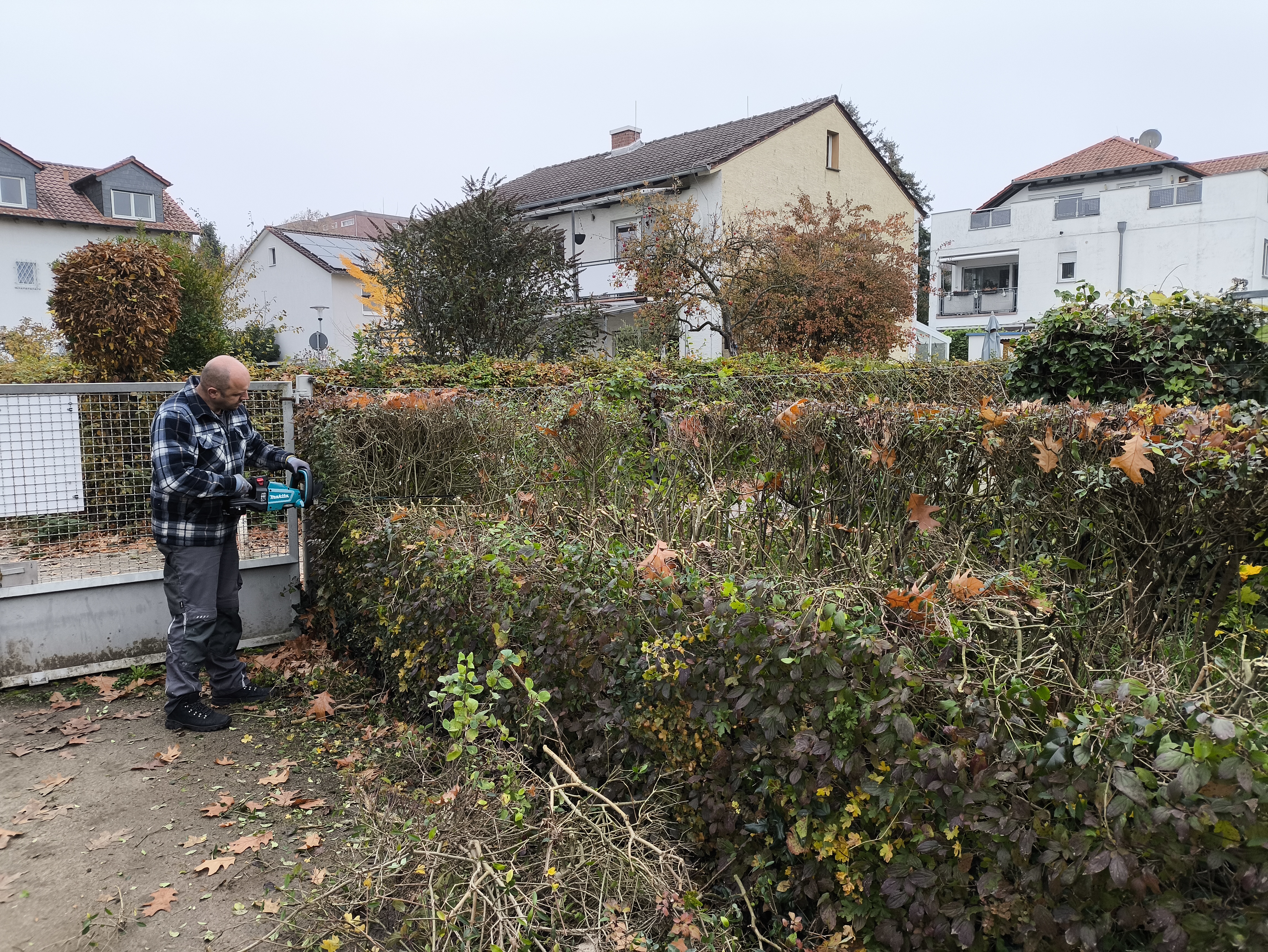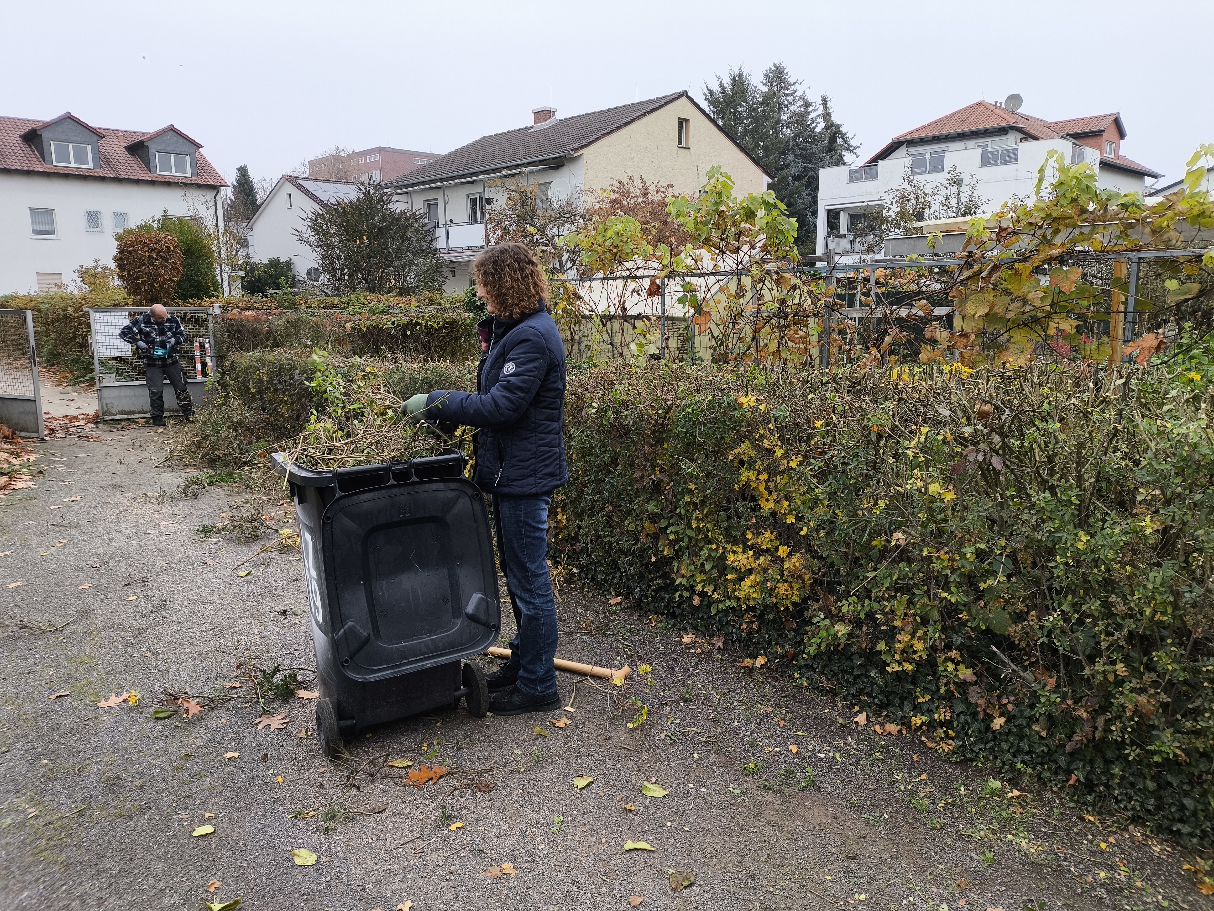 Gemeinschaftsarbeit, Rückschnitt der Außenanlage sowie Unkrautentfernung der Wege am 08.11.2025.