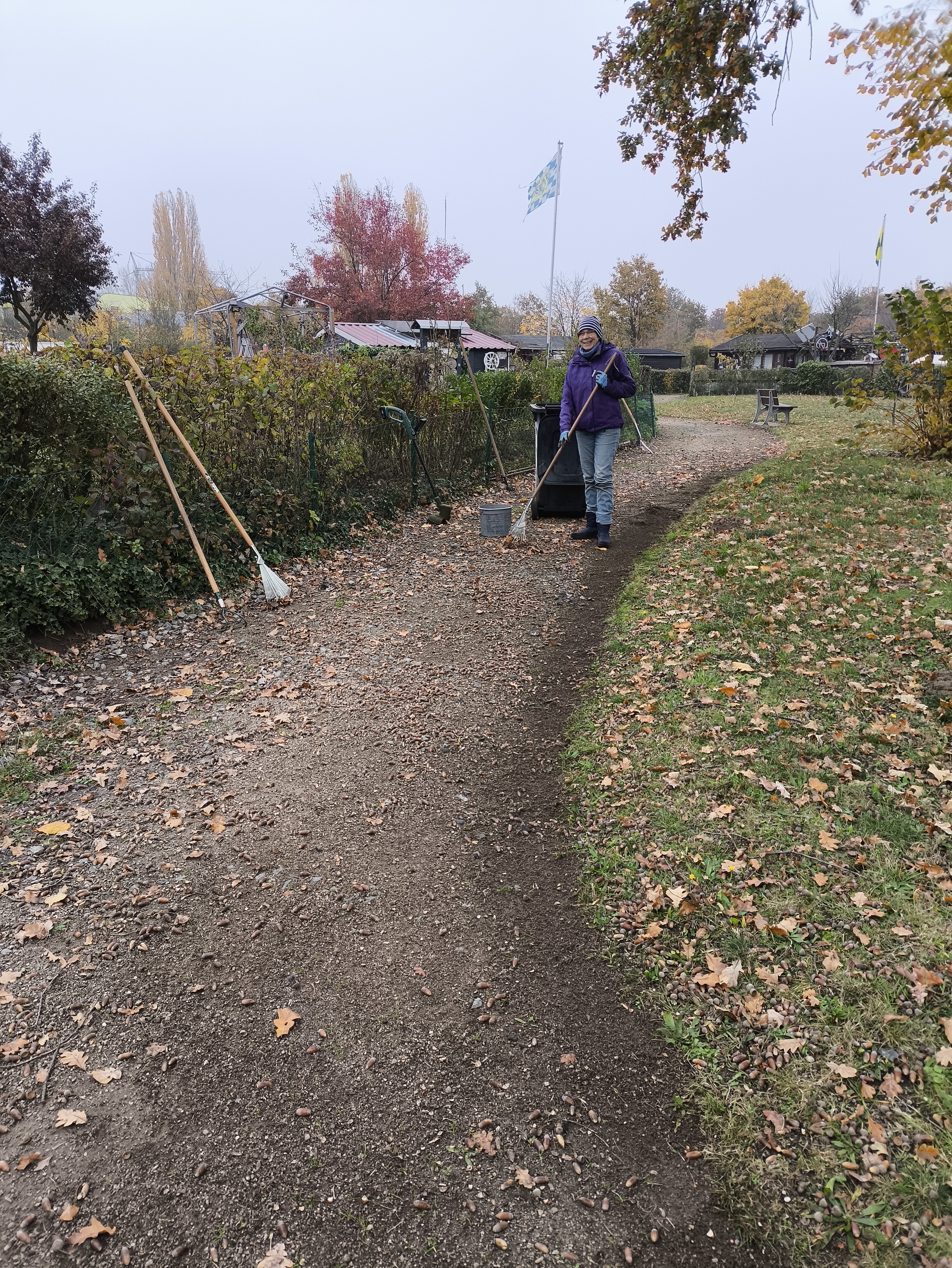 Gemeinschaftsarbeit, Rückschnitt der Außenanlage sowie Unkrautentfernung der Wege am 08.11.2025.